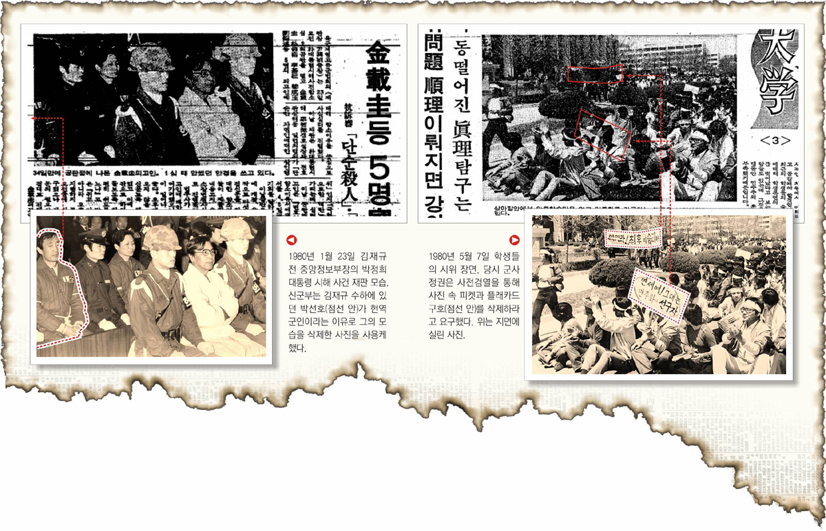 계엄사령부 검열단은 당초 이 사진에 게재불가 판정을 내렸다가 ‘폭도들이 무기 점검을 하는 사진’이라는 왜곡된 설명을 붙여 게재하도록 했다. 1980년 10월 1일 국군의 날 행사장에서 사열하는 전두환(全斗煥) 대통령을 찍은 사진은 오로지 대통령의 대머리가 드러나는 뒷모습이라는 이유만으로 게재불가 판정이 내려졌다.