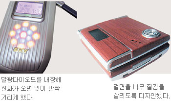 최근 인기를 끄는 튜닝은 광섬유나 발광물질을 이용해 휴대전화에서 화려한 빛이 나도록 하는 것. 휴대전화의 내부 기판에 발광다이오드(LED)를 넣어 키패드에서 빛이 나도록 하거나, 표면에 큐빅이나 발광 물질을 칠해 전화가 올 경우 빛나게 한다.