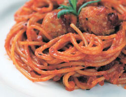 ▽재료=콩비지 100g, 다진 쇠고기 100g, 다진 양파 약간, 다진 마늘 1큰술, 녹말가루 1작은술, 달걀 1개, 스파게티 면 150g, 케첩, 밀가루 1작은술, 올리브오일, 붉은 토마토, 설탕 1큰술, 소금 약간, 후추 약간
