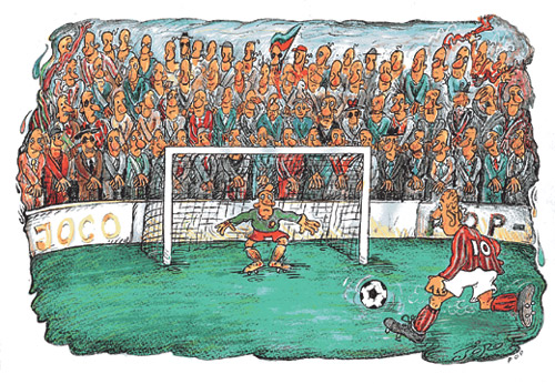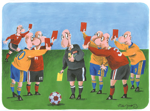 《2006 독일 월드컵을 앞두고 동아일보는 전 세계 카툰, 캐리커처 작가들을 대상으로 ‘축구’를 주제로 한 ‘2006 서울 디지털 캐리커처 & 카툰 공모전’을 열었다. 이 공모전의 캐리커처 부문에서 아르헨티나의 루이스 실바가, 카툰 부문에서는 이스라엘의 세르게이 시첸코가 각각 금상의 영예를 안았다. 심사위원장인 이홍우 한국시사만화협회장은 “아이디어와 재치로 가득 찬 수작이 많이 응모했다”며 “캐리커처와 카툰의 장점이자 특징인 보는 재미를 선사하는 작품을 수상작으로 선정했다”고 말했다. 32개국 작가가 출품한 작품 236점 중 70점이 본선에 올랐고 금, 은, 동상과 특별상 등 28명의 작가가 총상금 3만 달러를 받았다. 전시는 서울 종로구 세종로 동아미디어센터 앞 동아광장에서 5월 8일까지 열린다.》
