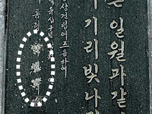 4일 ‘백범김구선생기념사업회’에 따르면 백범의 둘째 아들인 김신(金信) 기념사업회장이 지난해 10월 백범의 동상을 받치는 주춧돌 왼쪽 옆면에 새겨진 축사 기념판에서 박 전 대통령의 이름이 크게 훼손된 것을 발견했다.