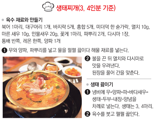 ▽주=육수는 너무 비싸서 그렇고, 두부는 더 넣으면 맛을 뺏어. 끓자마자 생태부터 먹는 사람은 ‘1학년’이야.