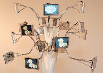 ‘식물적 사유’라는 작품은 모니터 16개를 나뭇가지처럼 매달았다. 화면에는 시간에 따라 꽃을 촬영한 영상이 나온다. 나무가 자신의 성장 과정을 생각한다면 이런 이미지일까.
