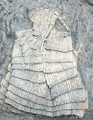 경남문화재연구원은 부산 동래구 지하철 3호선 수안정거장부지의 유적을 발굴 조사한 결과 동래읍성의 해자 유적에서 철제 비늘갑옷 상의 1벌을 발견했다고 5일 밝혔다. 발굴 팀 관계자는 "해자의 뻘 속에 묻혀 공기가 차단된 덕분에 400여 년 전 것으로 보이지 않을 정도로 보존 상태가 좋았다"고 말했다.