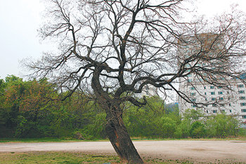 이날 현장에서 살펴본 회화나무는 잎이 나지 못한 채 지난해 열린 열매들이 말라비틀어진 상태였다.