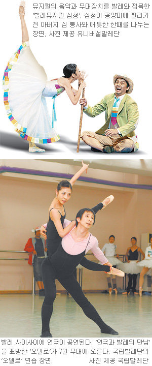 국내 무용계를 대표하는 국립발레단(단장 최태지)과 유니버설발레단(단장 문훈숙)이 올여름 연달아 야심작을 선보인다. 국립발레단의 창작공연 ‘오델로’와 유니버설발레단의 ‘발레뮤지컬 심청’. 흥미롭게도 두 공연 모두 크로스오버를 시도해 확실하게 대비될 참이다.