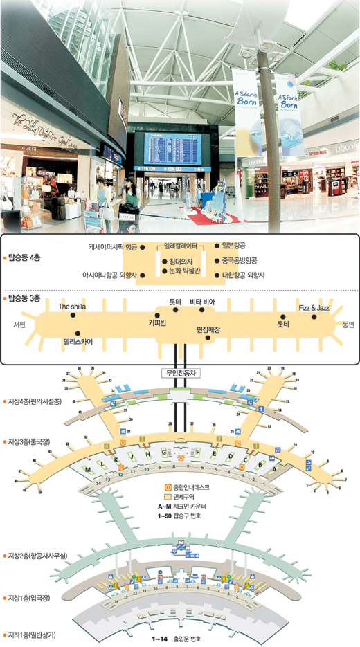 《인천국제공항이 변했다. 규모가 커졌고 볼거리가 많아졌다. 여기다 예전보다 더욱 편리해졌다. 지난해 여름휴가 이후 인천공항을 한 번도 안 가본 사람이라면 ‘언제 이런 게 생겼지?’ 하는 생각이 들 정도로 변화가 빠르다. 이 같은 변화는 외국항공사 전용 탑승동을 개장하면서 비롯됐다. 인천국제공항공사는 외국항공기 전용 탑승동 개장에 맞춰 지난해 말부터 인천공항 내 면세점과 식음료점 등 200여 개 상업시설에 대해 대대적인 매장 재배치 작업을 해왔다. 이 과정에서 있던 게 없어지기도 했다. 예전 기억만으로 ‘그게 여기 어디 있었는데…’ 하다가는 헤맬 수도 있다. 이번 여름 해외여행을 준비하고 있는 독자들을 위해 ‘인천공항 100배 즐기는 법’을 소개한다. 변화된 공항시설과 함께 몰라서 이용하지 못했던 편의시설도 소개한다. 국제규격 축구장 60배 규모로 연면적 49만5870m2(약 15만 평) 넓이의 인천공항에는 수많은 편의시설이 숨어 있다. 알고 보면 면세점 말고도 갈 만한 데가 많다.》