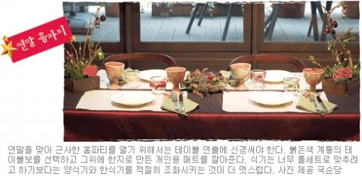 연말 모임이 많은 때다. 올 연말은 경기침체로 밖에서 모임을 가지기보다 집으로 친척 친구를 초청해 오붓하게 즐기는 ‘실속파 파티족’이 늘고 있다.