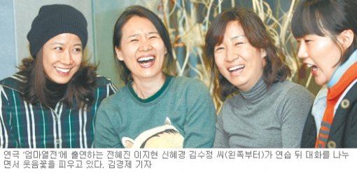 9일 오후 대학로 연습실에서의 연습이 끝난 뒤 만난 배우 신혜경(45) 이지현(36) 전혜진(32) 김수정(25) 씨는 ‘엄마, 아내, 딸’에 관한 질펀한 수다를 풀어냈다.