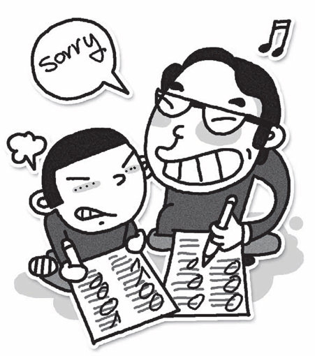 “치! 뭐야. 아빠만 다 맞추고. 아빤 매일매일 야한 생각만 많이 하니까 ‘야’자 들어간 건 다 맞추네. 밤 야(夜), 들 야(野), 어조사 야(耶). 이것 봐요, ‘야’자만 연달아서 3문제나 맞췄잖아” 하는데, 어찌나 당황스럽던지…