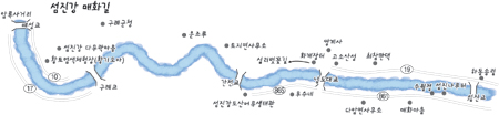 섬진강 매화길은 남도대교에서부터 시작된다. 남도대교는 경남 하동 화개마을과 전남 구례 간전을 잇는 다리. 하동쪽 길은 19번 국도이고, 구례에서 광양 다압에 이르는 길은 861번 지방도이다. 매화는 남도대교에서 섬진교까지 양 기슭을 따라(약 18km) 앞 다퉈 꽃눈을 터뜨리고 있다. 꽃은 하동 기슭보다는 861번 지방도의 광양 기슭이 훨씬 많다.