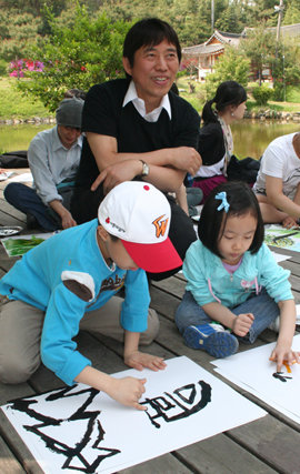 서울대 미대 김병종 교수는 1일 오후 경기 화성시 서신면 용두리 ‘책 읽는 집-옥란재(玉蘭齋)’에서 초등학생 20여 명 앞에 섰다. “오늘은 붓 대신 손에 물감을 묻혀서 그림을 그려봐요. 한 번에 손가락 10개를 모두 쓰면 어떤 모양이 나올까요?” 김 교수의 설명에 어린이들은 처음 그려보는 ‘손가락 그림’을 신기해하며 저마다 상상력을 발휘해 독창적인 그림을 그려냈다. 어린이들은 옥란재 주변을 뛰노는 닭을 형상화하기도 했고 하늘을 나는 로봇이나 언젠가는 태어날 상상 속의 동물을 그려내기도 했다. 김 교수는 “손가락에 닿은 물감의 색다른 감촉을 느끼며 그림을 그리면 훨씬 상상력이 풍부해진다”고 말했다.