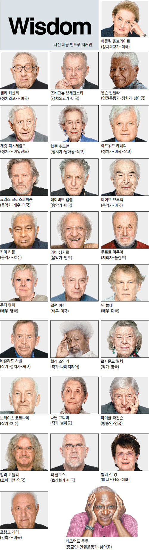 전직 국가원수, 노벨상 수상자, 정치인, 과학자, 문인, 미술가, 영화배우…. 20세기 현대사에 뚜렷한 발자취를 남긴 51명의 ‘지혜’를 모았다. 넬슨 만델라, 데즈먼드 투투, 헨리 키신저, 바츨라프 하벨, 에드워드 케네디, 즈비그뉴 브레진스키, 월레 소잉카, 제인 구달, 윌리 넬슨, 로자문드 필처, 척 클로스, 클린트 이스트우드 등이 전하는 경구다.
