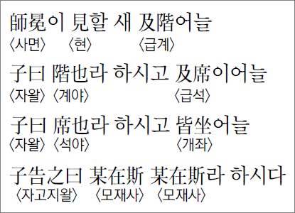 인간을 진심으로 사랑하는 사람은 신체가 부자유한 사람이나 호소할 곳 없이 고통 겪는 사람을 恝視(괄시)하지 않을 것이다. ‘논어’ ‘衛靈公(위령공)’의 이 章에서 공자는 앞 못 보는 악사를 위해 섬돌 있는 곳을 일러주고 그의 자리를 일러주었으며 자리에 함께하는 사람들이 누구인지 일일이 일러주었다. 師冕은 樂師(악사) 冕으로 비교적 지위 높은 음악가였다. 옛날에는 사람의 이름을 말할 때 관직이나 직분을 먼저 말한 뒤 본 이름을 붙였다. ‘某在斯, 某在斯’라고 두 번 말한 것은 자리에 함께하는 사람들을 하나하나 알려준 것이다.