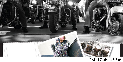 최근 스키니 진이 유행하면서 라이딩 팬츠의 바지폭도 예전보다 더 좁아졌다. 가죽 소재 의류가 많다 보니 검은색에 주황색 등으로 포인트를 주곤 했으나 올해는 흰색을 비롯해 사랑스러운 연한 핑크색 등 파스텔 색조가 강세를 보인다고 할리데이비슨 GM영업팀 백은혜 씨가 설명했다. 백 씨는 “문신 디자이너들이 프린트 디자인을 한 티셔츠 등이 인기를 끌고 있다”고 귀띔했다.