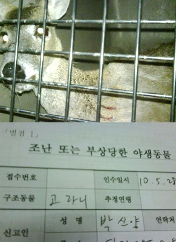 부상한 야생동물 인수, 인계서를 작성한 과정도 전한 그는 "정말 다행히 안정이 됐고 얼굴 상처도, 눈도 괜찮은 것 같습니다. 어둡게 해줘서 편하게 생각한다고 합니다"며 "아침에 정형외과 선생님께서 오시면 검사와 치료를 하게 된다고 합니다. 상처가 생각보다 심하지 않은 것 같아 다행입니다"라고 말했다.