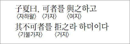 주자는 자하의 태도가 박절하다고 했다. 하지만 자하가 근거 없이 이런 말을 한 것은 아니다. 타인과의 관계에 대해 공자는 두 가지 가르침을 남겼기 때문이다. 즉, ‘學而’의 한 곳에서는 ‘無友不如己者(무우불여기자)’라 했으니 자기보다 못한 사람은 사귀지 말라는 뜻이다. 또 ‘學而’의 다른 곳에서는 ‘汎愛衆而親仁(범애중이친인)’이라 했다. 사람을 두루 사랑하되 특히 어진 이들과 친하게 지내라는 뜻이다. 논점이 배치되는 것은 아니지만 강조점이 다르다. 자하는 ‘無友不如己者’의 견해를 따랐다.