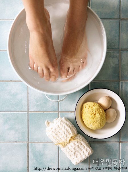 피부에 자극이 없는 부드러운 풋 스크럽제로 발의 각질을 제거한 뒤 풋 전용 크림을 듬뿍 발라 마사지한다. 발뒤꿈치의 각질을 심하게 없애면 오히려 더 두껍게 굳은살이 생기므로 눌렀을 때 다른 부분과 비슷한 탄력이 생길 정도로 제거하는 것이 노하우. 2010 신상 자연주의 보디 제품
