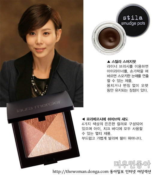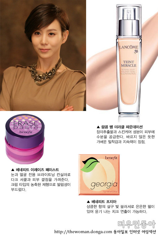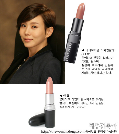 “지적이면서도 고급스러운 느낌을 줄 수 있도록 눈 꼬리를 내려 그려 부드러운 인상을 만들었어요. 아이와 립은 펄을 배제해 은은한 피치 톤이 감돌도록 했고요. 화려하지 않은 절제된 메이크업이 이번 캐릭터의 포인트에요.”
