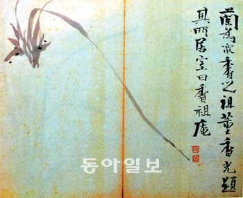입신의 경지로 완성했다는 ‘불이선란(不二禪蘭)’으로 유명한 추사 김정희도 난에 대해서는 각별하고 엄격한 자세를 보였습니다. 아들 상우에게 보낸 편지에서 추사는 “난 치는 법은 그림 그리는 법식대로 하는 것을 가장 꺼리니, 만약 그리는 법식을 쓰려면 일필(一筆)도 하지 않는 것이 좋다”고 가르쳐 난을 ‘치는’ 것이 그림을 ‘그리는’ 것과 완연히 다름을 강조하였습니다. 그뿐만 아니라 평상시에도 주변 사람들에게 “난초를 그리는데 한 번 그림의 영역에 빠지면 곧 마귀의 길에 떨어지는 것이다”라고 강조하여 난이 단순한 그림이 아님을 강조하였습니다.