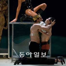 루마니아의 클루지 헝가리안 시어터가 서울 공연에 앞서 21, 22일 대전예술의전당에서 첫선을 보인 ‘리처드 3세’는 이렇게 자의식 강한 악당을 현대적 정치인으로 소환한다. 시대적 배경은 15세기 영국이 분명하지만 등장인물들은 엘리베이터와 휴대전화, 캠코더, 패션쇼에 익숙한 21세기 현대인들이다.