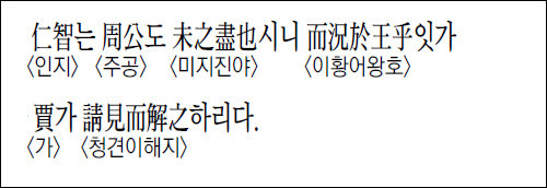 齊나라 宣王(선왕)은 연나라를 정벌한 후 2년도 안 돼 연나라 사람들이 배반하자, 맹자에게 부끄러움을 느꼈다. 그보다 앞서 맹자가 ‘연나라 백성이 기뻐하지 않는다면 연나라를 취하지 말라’고 충고했기 때문이다. 그러자 (녕,영)人(영인·아첨꾼)인 陳賈(진가)가, 성인이라 일컬어지는 周公도 그 형제들이 반란할 것을 예견하지 못했다는 사실을 거론하여 왕을 안심시키려 들었다. 왕을 위해 文過飾非(문과식비·잘못을 말로 꾸며 어름어름 넘어가려고 함)하려고 한 것이다.