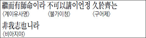 有師命에 대해서는 제나라가 인접 국가와 싸우는 전쟁이 일어나 군대의 출동명령이 있었다는 뜻으로 풀이한다. 인접 국가와의 전쟁에 대해서는 제나라가 연나라와 전쟁한 일을 가리킨다고 보는 설이 지배적이지만 단정하기 어렵다. 不可以請은 떠나겠다고 청할 틈이 없었다는 뜻이다. 久於齊는 제나라에 오래 머물렀던 일을 말한다.
