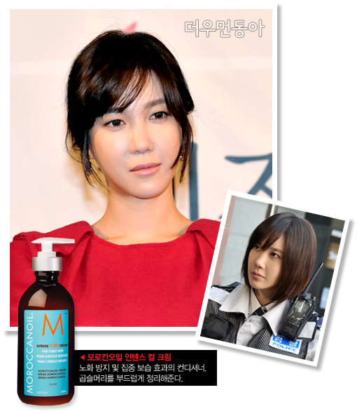 그녀의 담당 헤어디자이너 임철우씨(아우라헤어 원장)는 “보브 단발은 자칫 촌스럽고 밋밋한 느낌을 줄 수 있어 모발 끝에 질감을 줘 율동감있는 스타일을 완성했다”고 설명한다.