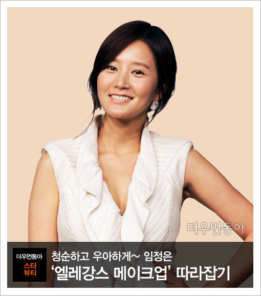 드라마 ‘여자가 두 번 화장할 때’ 제작발표회에서 청순하고 우아한 느낌의 메이크업을 선보인 임정은. 고급스러운 피부 표현과 톤다운 된 컬러 사용이 포인트인 그녀의 메이크업 노하우를 담당 메이크업 아티스트 수미씨(파크에비뉴 부원장)에게 들었다. BASE 임정은은 피부결이 얇고 매끄러워 베이스 메이크업이 두꺼워지면 화장이 떠 보이는 경향이 있다. 때문에 고급스러운 베이스 표현에 신경 쓴다.