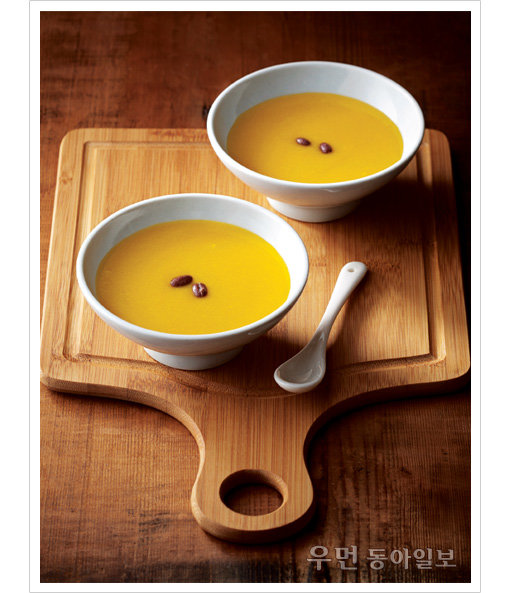 요리하기 1 단호박은 깨끗이 씻어 전자레인지에 10분간 익힌다. 숟가락으로 씨를 파내고 단호박 살만 긁어낸다. 2 냄비에 단호박과 물 350㎖를 넣고 끓인다. 3 ②가 끓어오르면 핸드블렌더로 곱게 간다. 4 물 100㎖과 찹쌀가루를 고루 푼다. 곱게 간 단호박에 찹쌀물을 넣고 주걱으로 저어가며 3분간 끓인다. 설탕, 꿀, 소금을 넣어 간한다. Cooking Tip 단호박죽을 끓일 때 당근을 약간 넣으면 먹음직스러운 색을 낼 수 있다. 호박죽의 농도는 찹쌀물의 양과 끓이는 시간에 따라 달라진다. 맑게 먹고 싶으면 찹쌀물을 넣지 않는다. 정리·전재희 <우먼 동아일보 http://thewoman.donga.com 인턴 에디터 heyj0114@daum.net> 요리·백오연 도움주신 곳·동녘라이프 031-955-3005