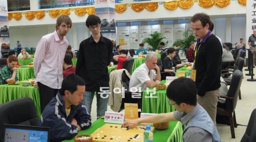 《 올해로 33회를 맞는 세계아마추어바둑선수권대회. 대회 사흘째를 맞은 15일 중국 광저우 기원 대국장. 광저우 아시아경기 바둑 종목이 열렸던 이곳에는 한국 중국 대만 등 바둑 강국뿐 아니라 유럽 미국 중동 등지의 아마추어 대표 56명이 참가해 열띤 경합을 벌였다. 올해는 북한도 대표를 보냈다. 아마추어 바둑대회답게 10대와 30, 40대 직업인들이 바둑판에 마주 앉아 대국하는 모습이 눈에 띄었다. 최고령자는 조란 무타브지자 크로아티아 대표. 67세로 은퇴한 바둑 애호가이지만 아마 5단의 실력으로 당당히 대회에 참가했다. 모로코의 참가자는 7급 정도의 수준으로 이날까지 1승도 보태지 못했다. 그런 탓인지 승부의 긴장감보다는 바둑을 통한 교류의 장이라는 느낌이 강했다. 참가 선수들의 직업군도 수학자, 번역가, 엔지니어, 컴퓨터 프로그래머, 음악가, 기자, 등산가이드, 현역 군인까지 다양했다. 》