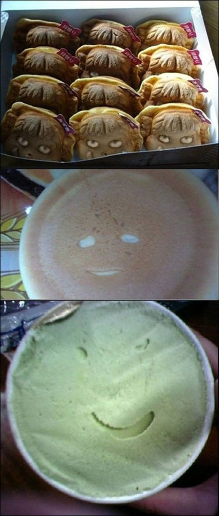 공개된 사진에는 빵과 아이스크림 등 우리가 흔히 먹는 과자류의 모습이 담겨 있다. 그러나 사진을 자세히 들여다 보면 과자들이 마치‘니가 날 먹겠다고?’ 라고 말하는 것 같은 표정을 짓고 있어 보는 이의 웃음을 자아낸다.