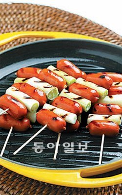 소시지 대파구이 인공적인 소시지와 천연의 대파를 하나씩 번갈아가며 꼬챙이에 예쁘게 꽂은 뒤 노릇하게 구워 먹는 아주 간단한 요리.