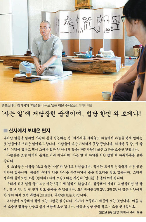 후후, 그랬더니 회사를 떠난 선배 한 분이 ‘그냥 아무 데나 버리지, 뭘 그렇게 멀리까지…’라고 댓글을 달았다. 그러나 괜히 템플스테이가 아니었다.