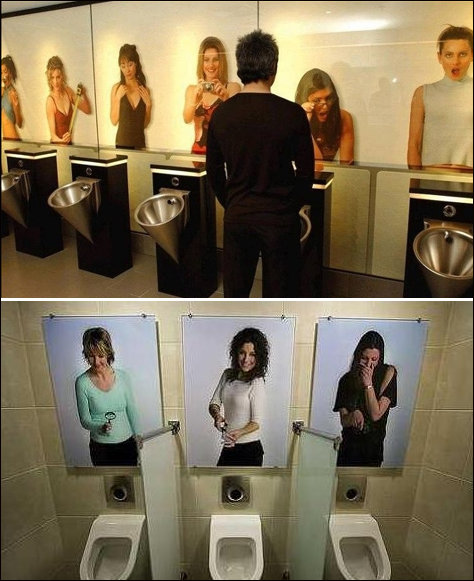 공개된 ‘악마의 화장실’사진은 소변기 앞에 서서 볼 일을 보고 있는 남성을 쳐다보는 여성들의 갖가지 표정을 담은 것.