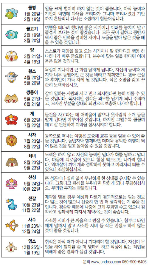 [오늘의 운세/12월 1일]별자리로 본 운세