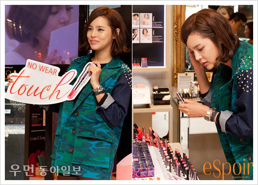 메이크업 전문 브랜드 에스쁘아의 뮤즈 박시연이 에스쁘아 2013 SS컬렉션 ‘립스틱 노웨어 터치’ 론칭을 축하하기 위해 홍대 매장을 깜짝 방문했다.