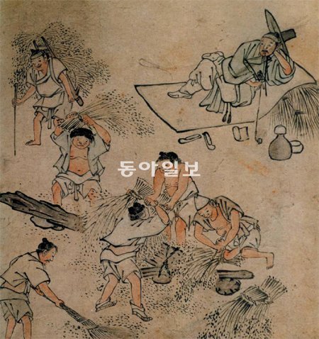 성호 이익은 큰 흉년이 들어 백성이 굶주릴 때에만 국가가 곡식을 빌려주고, 평소에는 각 가정이 스스로 농사를 짓고 살아가도록 일정량의 토지를 소유하는 복지정책을 제안했다. 그림은 김홍도의 풍속화 ‘타작’. 국립중앙박물관 소장