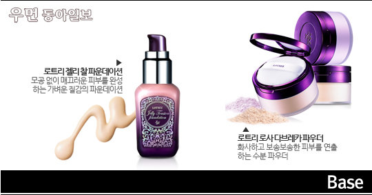 BASE 눈매와 입술에 포인트를 주기 때문에 피부는 잡티와 요철 없이 매끄럽게 표현한다. 선크림을 바른 뒤, 티슈로 유분기를 제거해 뭉침 현상을 방지한다. 브러시에 파운데이션 소량을 묻혀 얼굴 전체에 바른 뒤, 수분 파우더를 가볍게 발라 유분기를 제거한다.