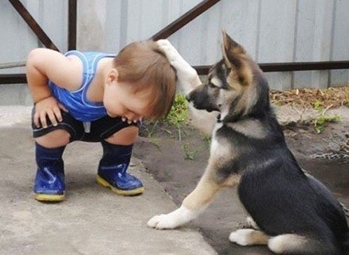 온라인 상에 올라온 ‘아이 칭찬하는 개’사진이 누리꾼들 사이에서 화제다.