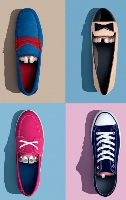 이는 독일 함부르크에 있는 광고 이미지 제작사가 만든 것으로 알려졌다. 신발에는 튼튼한 치아, 벌어진 치아, 교정기를 낀 치아 등 다양한 치아 모양의 담겨 있다.