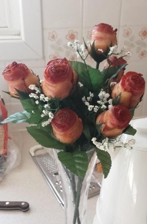 공개된 ‘베이컨 꽃다발’ 게시물 속에는 베이컨으로 만든 꽃다발 사진이 담겨 있다.
