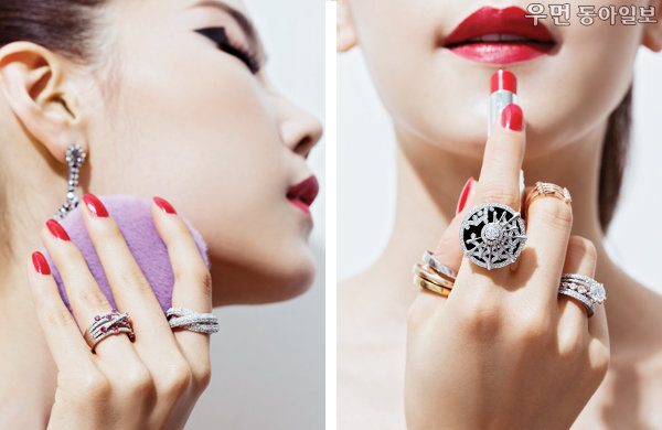 Match Game 의미를 부여해 한두 개만 착용하던 심플한 링 스타일링은 어쩐지 처량 맞아 보인다. 옷뿐 아니라 반지도 여러 겹 겹쳐 끼는 것이 대세다.