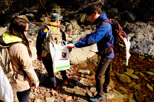 글로벌 아웃도어기업 ㈜블랙야크(대표 강태선)가 명산을 가꾸고 보존하기 위해 산에 버려진 쓰레기를 줍는 ‘그린야크 클린산행 캠페인(사진)’을 연중 전개한다.