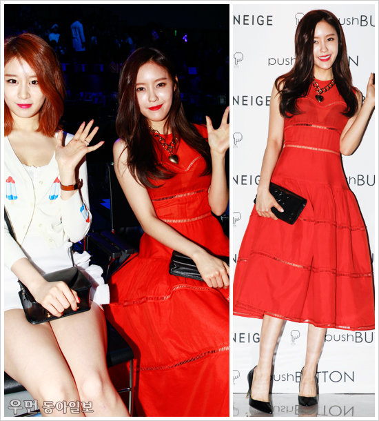 효민 처음에는 컬러 그 다음에는 시스루 소재에 시선을 빼앗긴다. 유혹적인 레드 티어드 드레스로 팜파탈 변신에 성공한 걸그룹 티아라 멤버 효민. 시선을 드레스로 집중시키기 위해 백과 구두 모두 블랙의 심플한 디자인을 선택했다. 속옷이 드러나는 시스루 소재가 부담스럽다면 얇은 슬립을 받쳐 입는 것도 좋다. 단, 컬러는 블랙이어야 세련되다. 드레스와 같은 레드 컬러 립스틱을 바르는 정도의 센스는 배워둘 만하다.
