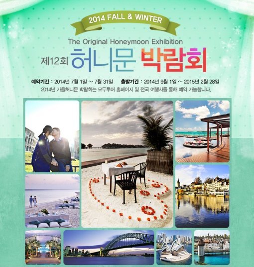 ㈜모두투어네트워크(사장 한옥민)가 7월 한달 동안 ‘2014 F/W 온라인 허니문 박람회’를 진행한다. 2014년 Fall & Winter시즌인 9월 1일부터 내년 2월 28일까지 출발하는 예비신혼부부를 대상으로 진행되는 모두투어의 온라인 허니문 박람회로 모두투어홈페이지(www.modetour.com)및 전국 여행사를 통해 예약 가능하다.