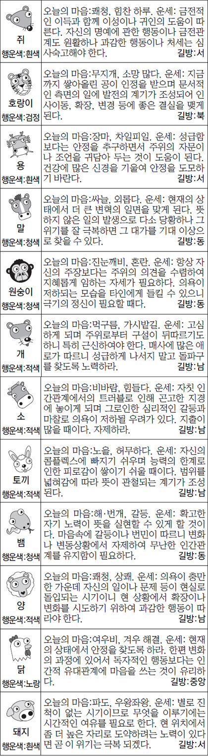 [스포츠동아 오늘의 운세] 2014년 9월 1일 월요일 (음력 8월 8일)
