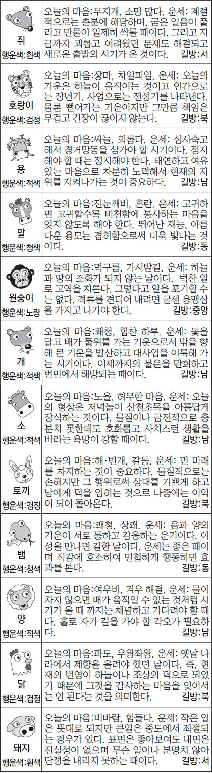 [스포츠동아 오늘의 운세] 2014년 9월 11일 목요일 (음력 8월 18일)