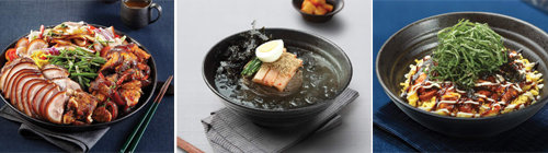 3가지 메뉴를 한번에 즐기는 ‘이쪽저쪽’(왼쪽사진). 동치미 막국수 (가운데 사진). 불족 마요 비빔밥