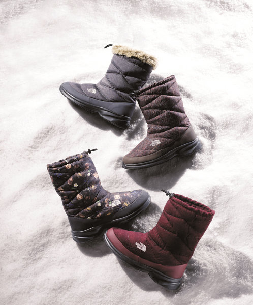 대표제품인 노스페이스 ‘14 우먼 부티(11만원)’는 여성용 하프컷 다운부츠다. 아웃도어 브랜드 제품답게 숨은 기능이 많다. 미드솔(중창)은 충격흡수 기능이 탁월해 오래 신고 걸어도 피로감이 덜 하다. 아웃솔(겉창)에는 접지력이 뛰어난 아이스픽을 적용했다. 눈이 쌓인 길이나 빙판에서 위력을 발휘한다. 신발 상단에 스트링과 원터치 스토퍼를 달았다. 발에 착 붙는 느낌으로 신을 수 있을 뿐만 아니라 외부의 눈, 한기가 신발 안으로 들어오지 못하게 막아준다.